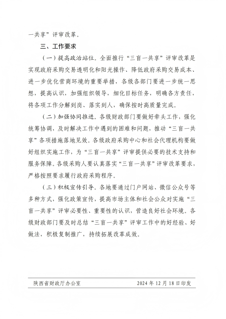 關于印發《陜西省政府采購領域“三盲一共享”評審實施方案》的通知